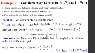 In probability theory complementary events are those events which can or cannot occur. The given 2 events are not equally likely b. Ie For any event E PE PE 1 to 2 which means the sum of the probability of impossible events and the probability of possible.